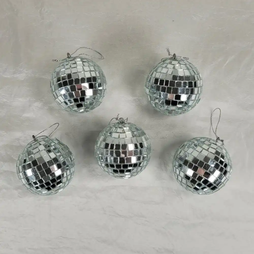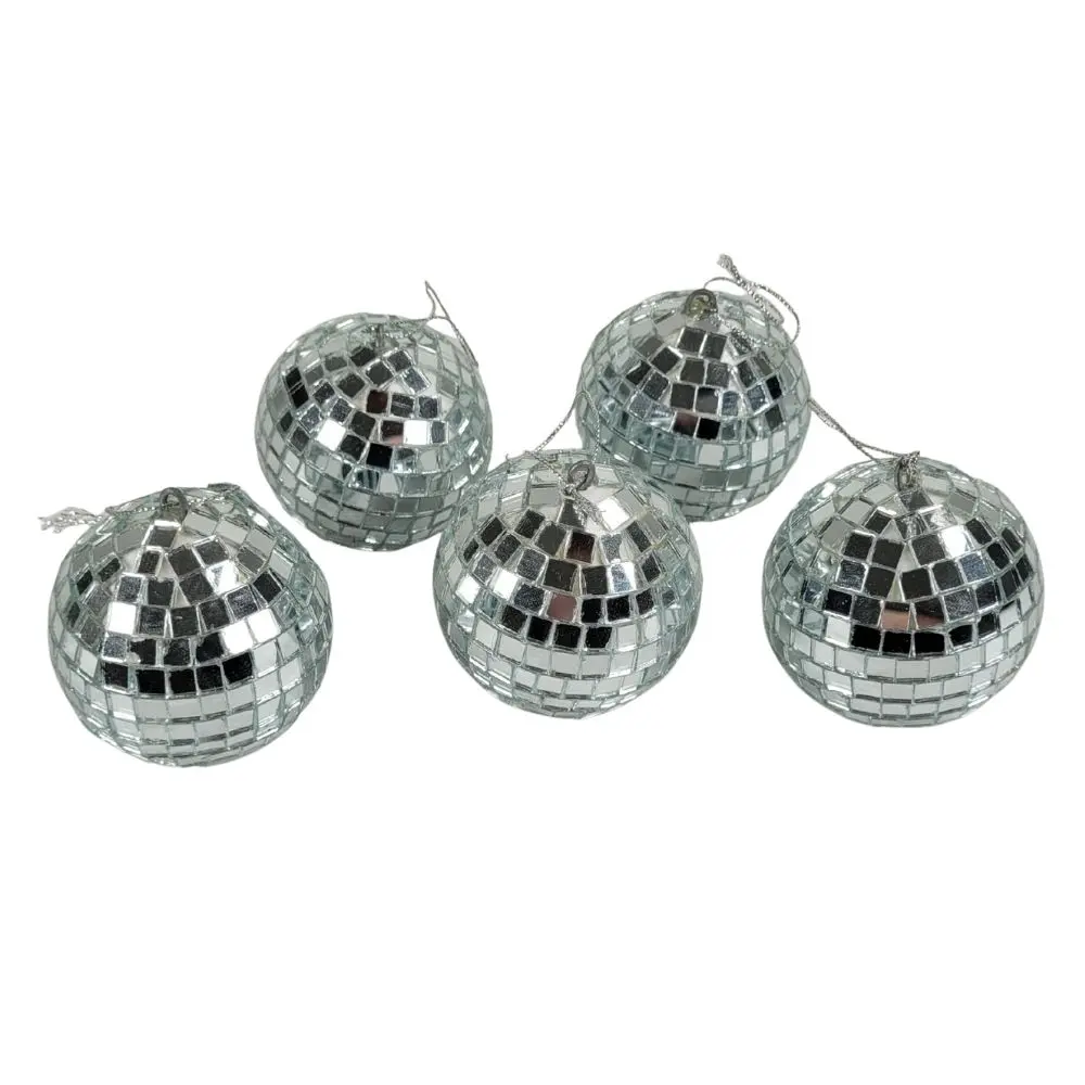 Giv din fest, stue eller juletræ et strejf af glamour med disse elegante sølv diskokugler. Hver kugle er dækket af små spejle, der fanger lyset og skaber et levende, glitrende spil i rummet. Perfekte til nytår, temafester, fotoshoots eller som dekorativt indslag i hjemmet.