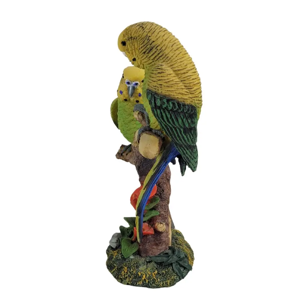Flot og detaljeret figur med undulater, der sidder på en gren med smukke blomster ved foden. Figuren er dekoreret med fine detaljer i fjerdragten og de naturtro farver gør den til en charmerende pyntegenstand i hjemmet. Perfekt til fugleelskere eller som en unik gaveide.