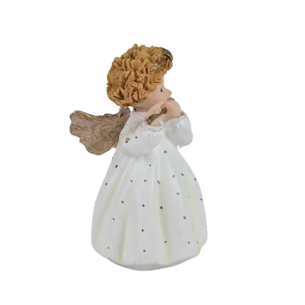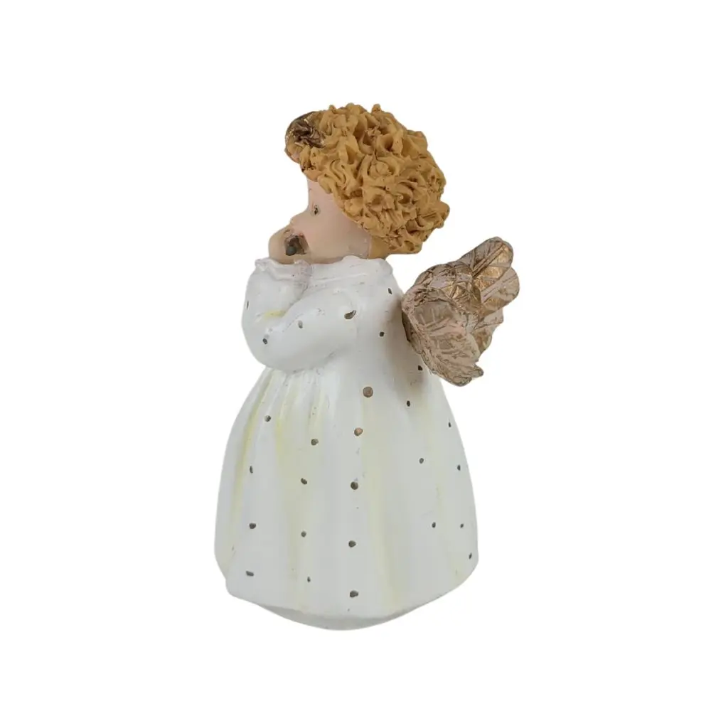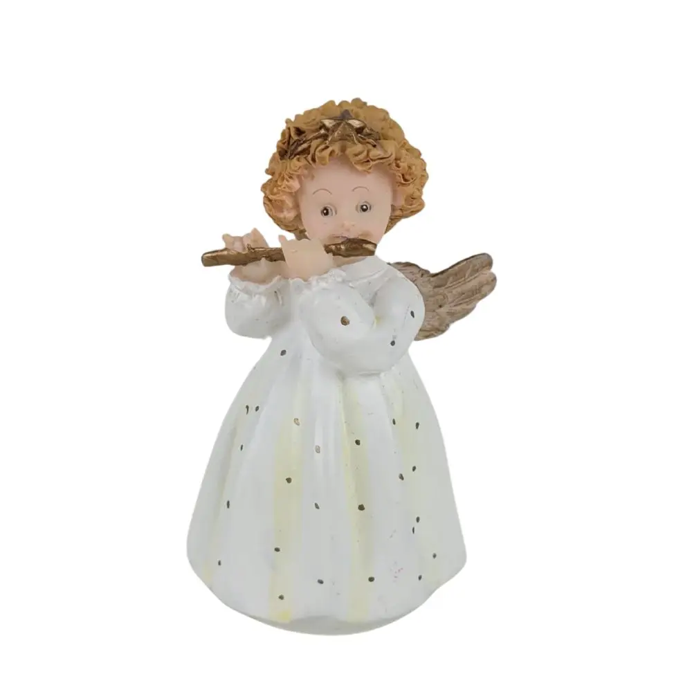 Skab magisk stemning med denne elegante Sia Collection engel. Figurer fra denne serie er kendt for deres håndværk og poetiske detaljer. Englen har en hvid kjole med gyldne prikker, guld vinger og en fløjte af guld, der udstråler fred og skønhed.