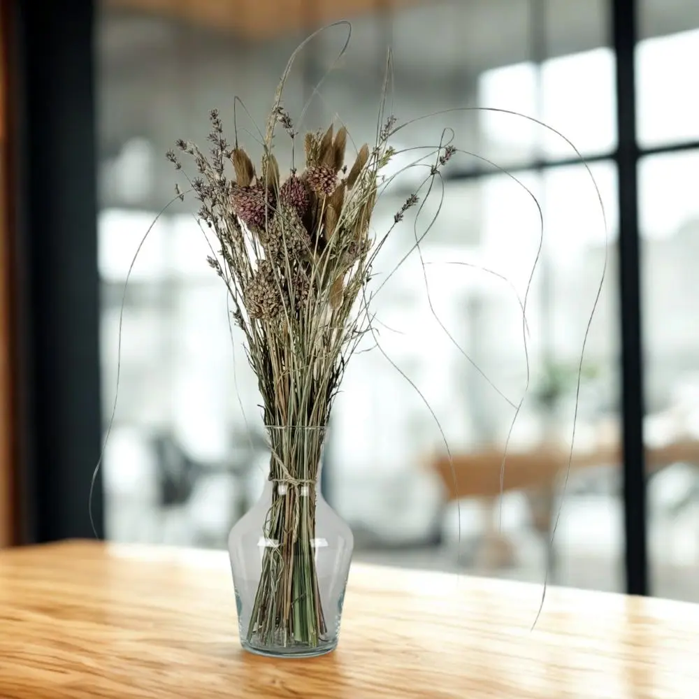 Denne smukke tørrede buket er sammensat af nøje udvalgte blomster og græsser i naturlige toner. Den passer perfekt til moderne, nordisk indretning og tilfører varme og karakter til ethvert rum, helt uden behov for vanding eller vedligeholdelse. Brug den i din egen vase og skab et tidløst udtryk, der holder år efter år.